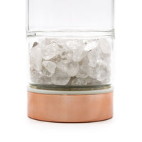 El cuarzo roca es el cristal de la claridad. Amplifica la intención, limpia la energía y aporta equilibrio emocional. Integrar este mineral en tus rutinas de hidratación convierte cada momento en un pequeño ritual de bienestar, dándote una sensación de renovación interna y lucidez.
